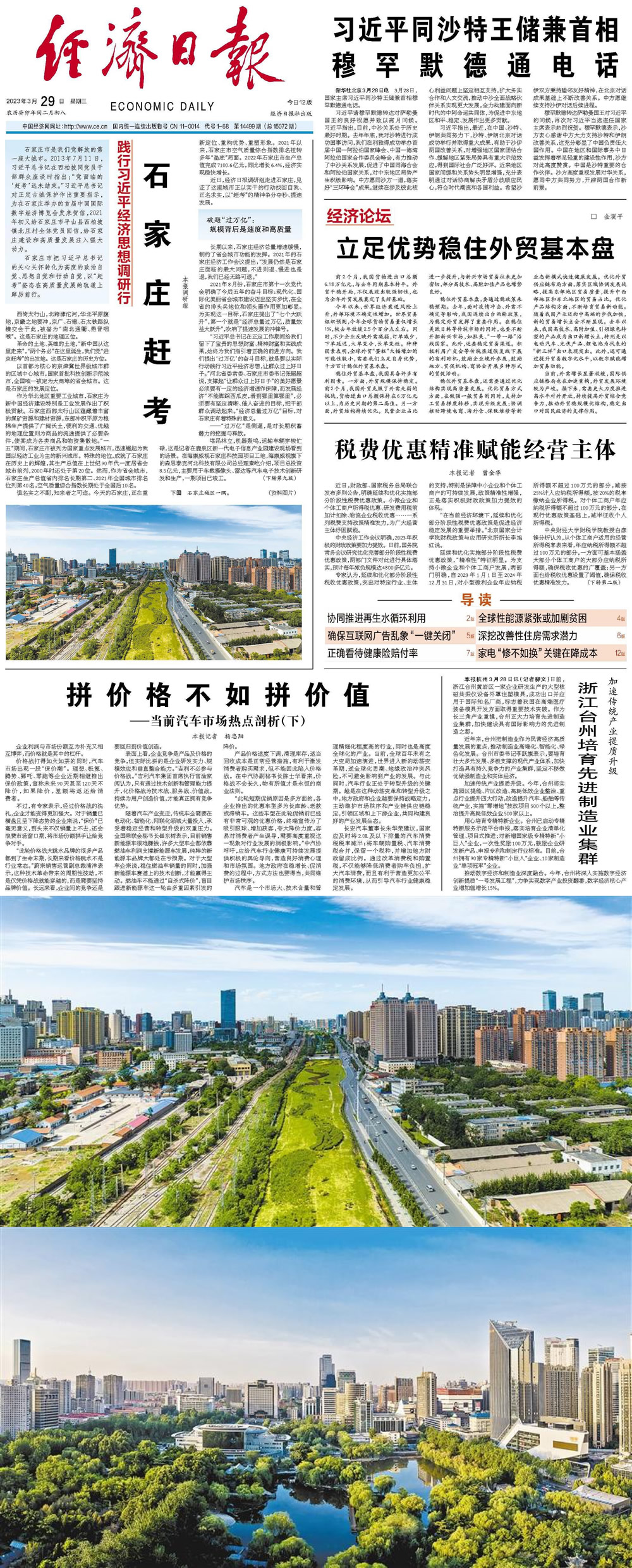 | 石家莊市是我們黨解放的第一座大城市。2013年7月11日,習(xí)近平總書記在西柏坡同黨員干部群眾座談時(shí)指出:“黨面臨的‘趕考’遠(yuǎn)未結(jié)束。”習(xí)近平總書記對(duì)正定古城保護(hù)作出重要指示,為在石家莊舉辦的首屆中國國際數(shù)字經(jīng)濟(jì)博覽會(huì)發(fā)來賀信,2021年初又給石家莊市平山縣西柏坡鎮(zhèn)北莊村全體黨員回信,給石家莊建設(shè)和高質(zhì)量發(fā)展注入強(qiáng)大動(dòng)力。 石家莊市把習(xí)近平總書記的關(guān)心關(guān)懷轉(zhuǎn)化為高度的政治自覺、思想自覺和行動(dòng)自覺,以“趕考”姿態(tài)在高質(zhì)量發(fā)展的軌道上踔厲前行。 西倚太行山,北跨滹沱河,華北平原腹地,京畿之地要沖,京廣、石德、石太鐵路縱橫交會(huì)于此,被譽(yù)為“南北通衢、燕晉咽喉”。這是石家莊的地理區(qū)位。 革命的土地、英雄的土地,“新中國從這里走來”,“兩個(gè)務(wù)必”在這里誕生,我們黨“進(jìn)京趕考”的出發(fā)地。這是石家莊的歷史方位。 以首都為核心的京津冀世界級(jí)城市群的區(qū)域中心城市,國家首批科技創(chuàng)新示范城市,全國唯一被定為大商埠的省會(huì)城市。這是石家莊的發(fā)展定位。 作為華北地區(qū)重要工業(yè)城市,石家莊為新中國經(jīng)濟(jì)建設(shè)特別是工業(yè)發(fā)展作出了積極貢獻(xiàn)。石家莊西部太行山區(qū)蘊(yùn)藏著豐富的煤礦資源和建材資源,東部沖積平原為糧棉生產(chǎn)提供了廣闊沃土,便利的交通、優(yōu)越的地理位置則為商品的流通提供了必要條件,使其成為各類商品和物資集散地!耙晃濉逼陂g,石家莊市被列為國家重點(diǎn)發(fā)展城市,迅速崛起為我國以輕紡工業(yè)為主的新興城市。特殊的地位,成就了石家莊在歷史上的輝煌,其生產(chǎn)總值在上世紀(jì)90年代一度居省會(huì)城市前列,2000年時(shí)還處于第20位。然而,作為省會(huì)城市,石家莊生產(chǎn)總值省內(nèi)排名長期第二、2021年全國城市排名位列第40名,空氣質(zhì)量綜合指數(shù)長期處于全國后10名。 懼名實(shí)之不副,知來者之可追。今天的石家莊,正在重新定位、重構(gòu)優(yōu)勢、重塑形象。2021年以來,石家莊市空氣質(zhì)量綜合指數(shù)排名扭轉(zhuǎn)多年“墊底”局面。2022年石家莊市生產(chǎn)總值完成7100.6億元,同比增長6.4%,經(jīng)濟(jì)實(shí)現(xiàn)穩(wěn)快增長。 近日,經(jīng)濟(jì)日?qǐng)?bào)調(diào)研組走進(jìn)石家莊,見證了這座城市正以實(shí)干的行動(dòng)找回自我、正名求實(shí),以“趕考”的精神爭分奪秒、提速發(fā)展。 破題“過萬億”: 規(guī)模背后是速度和高質(zhì)量 長期以來,石家莊經(jīng)濟(jì)總量增速緩慢,制約了省會(huì)城市功能的發(fā)揮。2021年的石家莊經(jīng)濟(jì)工作會(huì)議提出:“發(fā)展仍然是石家莊面臨的最大問題,不進(jìn)則退、慢進(jìn)也是退,我們已經(jīng)無路可退! 2021年8月份,石家莊市第十一次黨代會(huì)明確了今后五年的奮斗目標(biāo):現(xiàn)代化、國際化美麗省會(huì)城市建設(shè)邁出堅(jiān)實(shí)步伐,在全省的排頭兵地位和領(lǐng)頭雁作用更加彰顯。為實(shí)現(xiàn)這一目標(biāo),石家莊提出了“七個(gè)大躍升”,第一個(gè)就是“經(jīng)濟(jì)總量過萬億,質(zhì)量效益大躍升”,吹響了提速發(fā)展的沖鋒號(hào)。 “習(xí)近平總書記在正定工作期間給我們留下了寶貴的思想財(cái)富、精神財(cái)富和實(shí)踐成果,始終為我們指引著正確的前進(jìn)方向。我們提出‘過萬億’的奮斗目標(biāo),就是要以實(shí)際行動(dòng)踐行習(xí)近平經(jīng)濟(jì)思想,讓群眾過上好日子!焙颖笔∥N⑹仪f市委書記張超超說,支撐起“讓群眾過上好日子”的美好愿景必須要有一定的經(jīng)濟(jì)增速作保障,而發(fā)展經(jīng)濟(jì)“不能腳踩西瓜皮,滑到哪里算哪里”,必須要有堅(jiān)定清晰、催人奮進(jìn)的目標(biāo),把干部群眾調(diào)動(dòng)起來!敖(jīng)濟(jì)總量過萬億”目標(biāo),對(duì)石家莊有著特殊的意義。 ——“過萬億”是倒逼,是對(duì)長期積蓄潛力的挖掘與釋放。 塔吊林立,機(jī)器轟鳴,運(yùn)輸車輛穿梭忙碌,這是記者在鹿泉區(qū)新一代電子信息產(chǎn)業(yè)園建設(shè)現(xiàn)場看到的場景。在?低暿仪f科技園項(xiàng)目工地,海康威視旗下的森思泰克河北科技有限公司總經(jīng)理秦屹介紹,項(xiàng)目總投資8.5億元,主要用于車載攝像頭、雷達(dá)等汽車電子技術(shù)創(chuàng)新研發(fā)和生產(chǎn),一期項(xiàng)目已竣工。 石家莊市委副秘書長、市委研究室主任趙建海為記者分析了實(shí)現(xiàn)“過萬億”目標(biāo)的底氣:京津冀協(xié)同發(fā)展為石家莊承接首都產(chǎn)業(yè)轉(zhuǎn)移和科技成果轉(zhuǎn)化提供了大好機(jī)遇;“一帶一路”建設(shè)為石家莊發(fā)揮商埠優(yōu)勢開拓國際市場提供了提速的動(dòng)力。其他生產(chǎn)總值超萬億元省會(huì)城市的發(fā)展歷程也為石家莊提供了借鑒,這些城市生產(chǎn)總值到達(dá)6000億元后,都在5年內(nèi)超過了萬億元。同時(shí),石家莊工業(yè)基礎(chǔ)雄厚,工業(yè)產(chǎn)業(yè)門類涵蓋了41個(gè)國民經(jīng)濟(jì)行業(yè)分類中的37個(gè)。新一代電子信息、生物醫(yī)藥、先進(jìn)裝